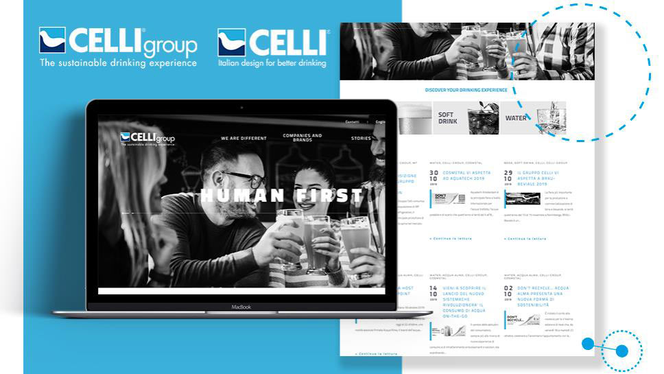Il nuovo sito corporate Celli Group si presenta elegante ed essenziale e si differenzia dai siti delle companies per un layout in bianco e nero che vuole creare distacco, senza però perdere di coordinazione nell’identità con gli altri siti. Le diverse sezioni tematiche sono state ideate per essere semplici ed esaustive e si dividono in 4 macrocategorie: WE ARE DIFFERENT (racconta la nostra identità e la nostra vision, con il messaggio chiaro di BEYOND THE BOTTLE che sottolinea l’importanza del superamento delle plastiche) COMPANIES AND BRANDS (descrive tutte le aziende del gruppo), STORIES (un contenitore di storie delle nostre aziende e del nostro business) e TALENTS (dedicata alla pubblicazione di posizioni aperte per la ricerca di nuovi talenti).