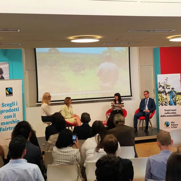Alla tavola rotonda hanno partecipato Letizia Mastroianni, Direttrice Acquisti e Responsabilità Aziendale di Aldi Italia; Matteo Mocellin, Responsabile Vendite di F.lli Damiano; e Andreea Postolache, Direttrice Globale di Prodotto e Marketing e Responsabile Vendite per l’Italia di Julius Meinl. Hanno condiviso esempi di collaborazioni con Fairtrade realizzati negli ultimi anni.