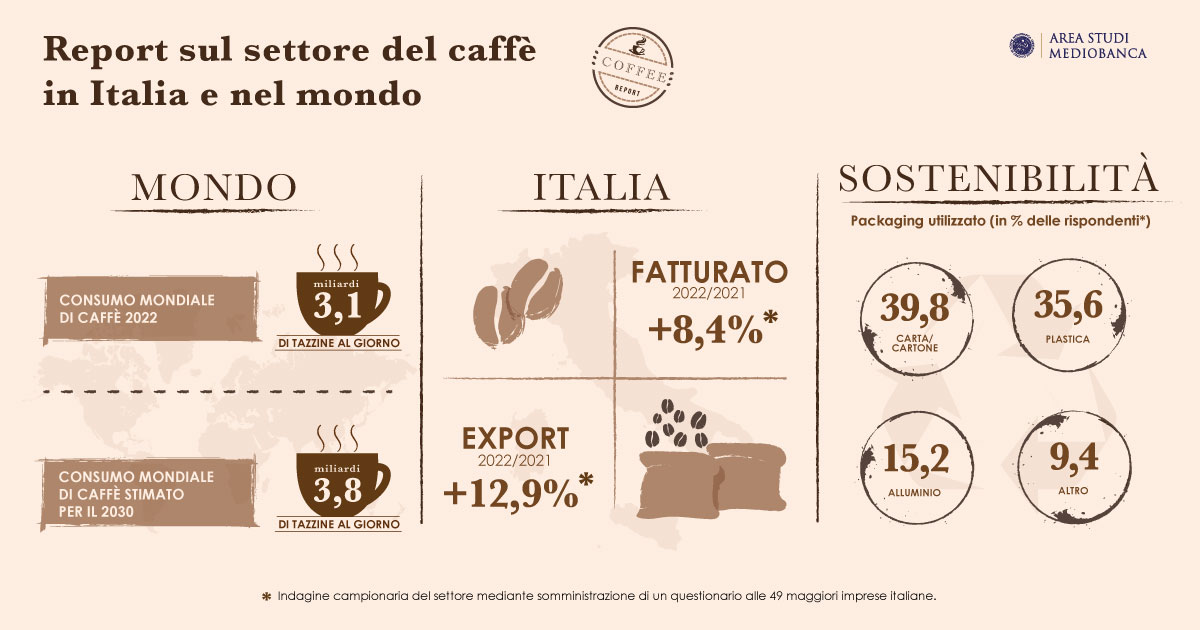 L’Area Studi Mediobanca pubblica un approfondimento sull’industria internazionale del caffè con un focus sui 49 maggiori player italiani che fatturano complessivamente 5,8 miliardi di euro ed esportano il 55,5% delle vendite. La documentazione è disponibile per il download sul sito www.areastudimediobanca.com