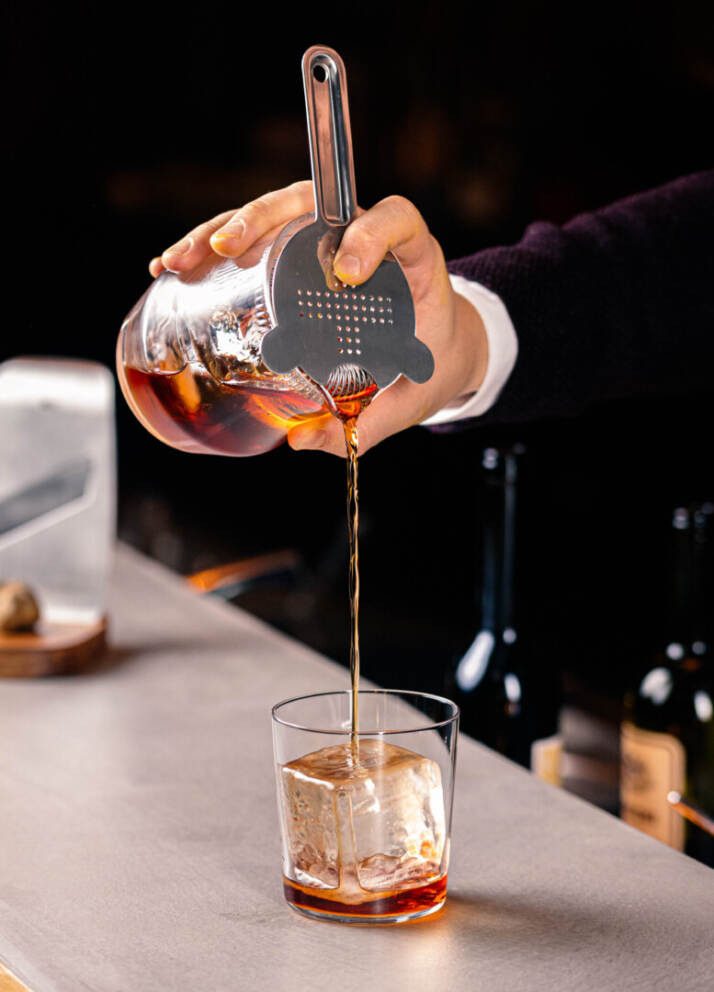 A Milano intanto, Guglielmo Miriello, bar manager del Ceresio 7, raccoglie l’ispirazione e propone Italian Gentleman, cocktail complesso dal profilo armonico, morbido, robusto, nel quale emergono le note lievemente amaricanti dei fiori di genzianella (nel Cocchi Americano) e della corteccia di china (nel Barolo Chinato) intrecciate sapientemente a quelle del Tartufo lamellato sul momento.