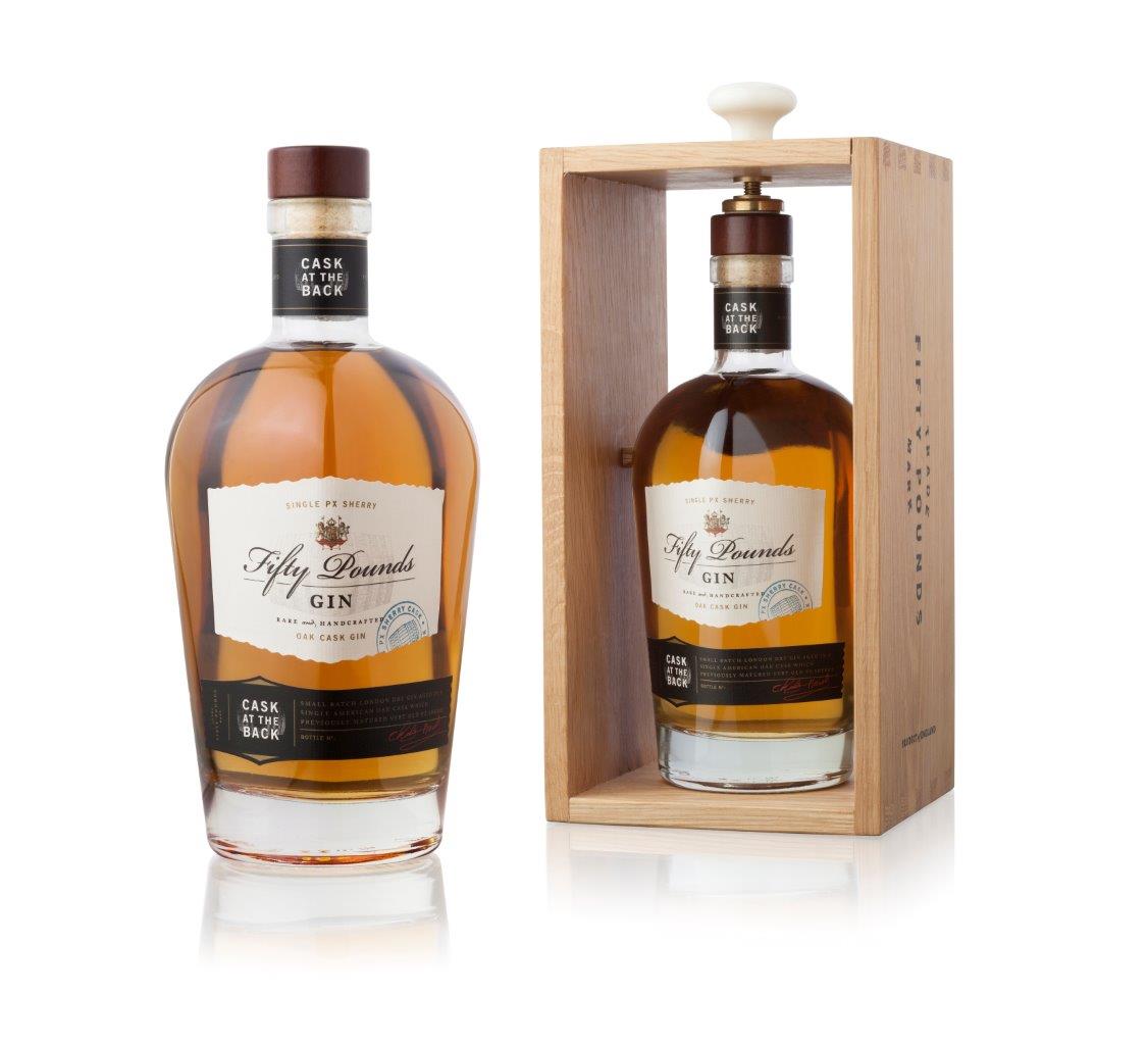 Fifty Pounds Cask at Back torna all’antica tradizione dei gin trasportati in botti di rovere. Il processo viene riadattato e oggi si utilizzano botti di legno di quercia precedentemente usate per fare maturare lo sherry Pedro Ximenez. Il gin sviluppa con il tempo un colore ambrato ed una rara complessità di sapori, invecchiando per ben 7 anni in un unico barile. Le botaniche usate regalano al naso i classici aromi di ginepro e agrumi con sentori di legno e rovere tostato accompagnati da note floreali e delicati sentori di uvetta, prugne e nocciole. Al palato il gusto di questo gin si evolve in una combinazione unica: alla dolcezza iniziale lascia spazio la morbidezza ed una finitura lunga, arrotondata e liscia.