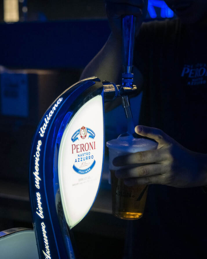 A The House of Peroni, si può gustare tutto il portfolio dell’azienda, oltre a Peroni Nastro Azzurro “classica” e Peroni Nastro Azzurro 0.0% ci sarà anche l’ultima nata Peroni Nastro Azzurro Stile Capri. Inoltre, è possibile vivere un’esperienza gustativa di mixologist dove ogni birra sarà abbinata a un piatto, per creare l’equilibrio perfetto di sapori.