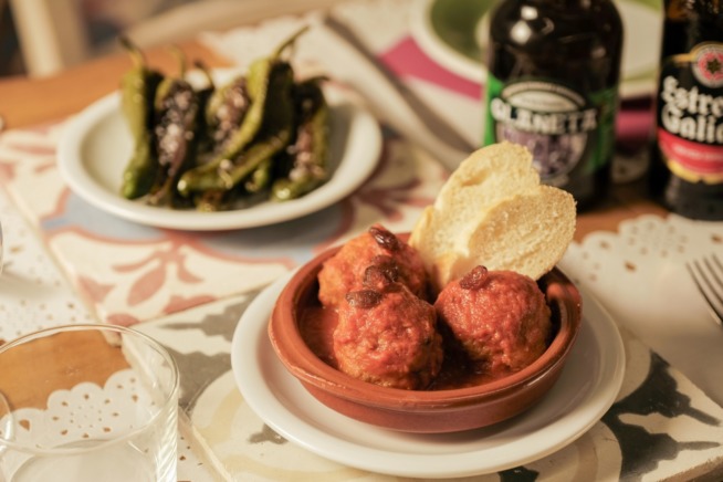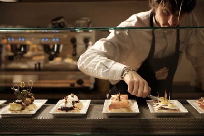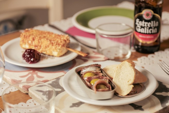 Per rompere il ghiaccio, però, c’è subito un bicchiere alla classica barra (bancone) di Cava fresca (vino spumante rigorosamente spagnolo), in mezzo a un assortimento di pintxos baschi (“rivisitazione” dei crostini con una piccola fetta di pane sommersa da ingredienti elaborati o meno): da provare assolutamente quello con espuma de mantequilla y anchoa del Cantábrico (spuma di burro e acciuga del Cantabrico) e quello con queso cabral, nuez y cebolla caramelizada (formaggio di capra, noce e cipolla caramellata nello Jerez).