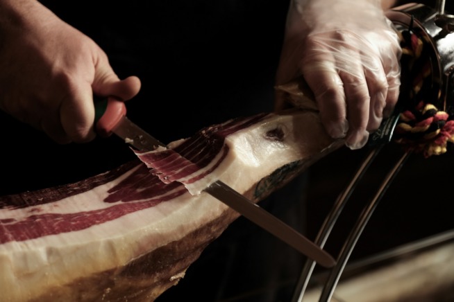 Un’experiencia española a 360°, che Beverfood.com ha potuto vivere in prima persona nella giornata di ieri, quando la stampa ha goduto di una deliziosa degustazione di jamón ed esplorato la sempre aggiornatissima proposta gastronomica del locale. Tre, i prestigiosi attori protagonisti dell’evento: Jamón Serrano Gran Reserva, stagionato oltre 20 mesi e originario della Sierra de Los Pedroches (Cordoba), Jamón Ibérico Cebo Jabugo, stagionato oltre 24 mesi (Huelva), e Jamón Ibérico de Bellota, prodotto da suini alimentati esclusivamente con ghiande ed erba, stagionato per più di 30 mesi (Cordoba).