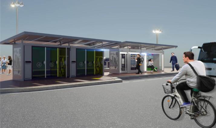- bus station di nuova concezione ad alto efficientamento energetico tramite pannelli solari e batterie di accumulo di ultima generazione
