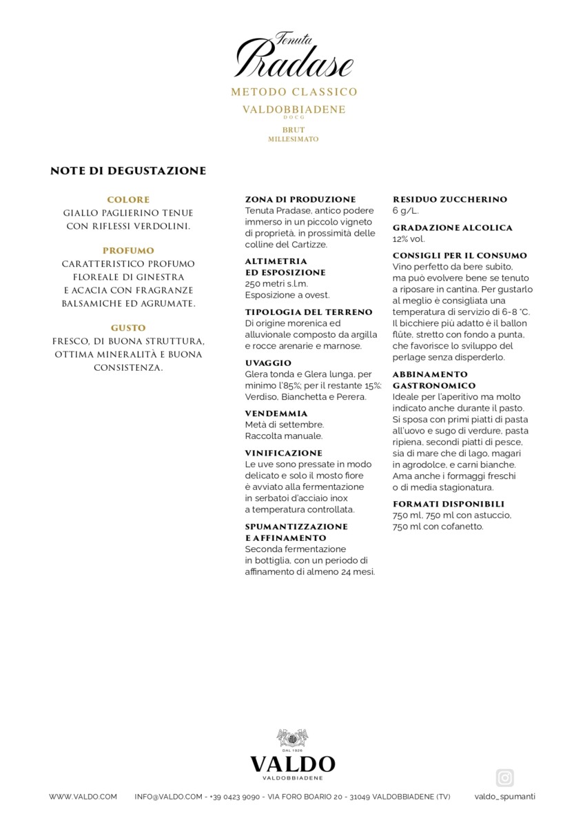 Valdo propone Tenuta Pradase Valdobbiadene Docg Brut Metodo Classico in edizione limitata