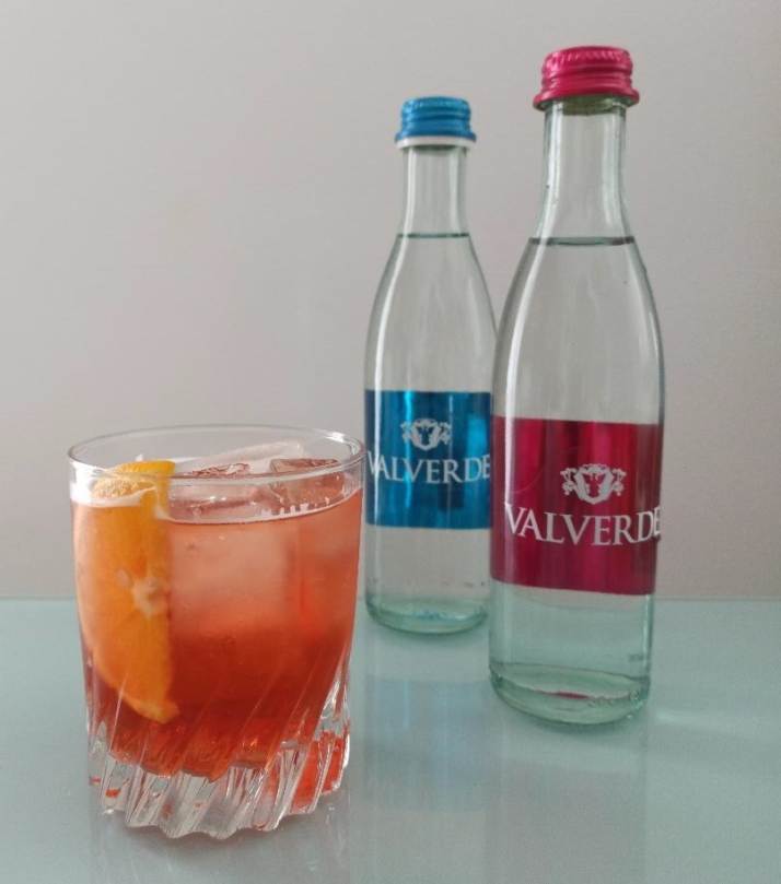 Aggiungere il ghiaccio e completare con l’acqua Valverde frizzante.