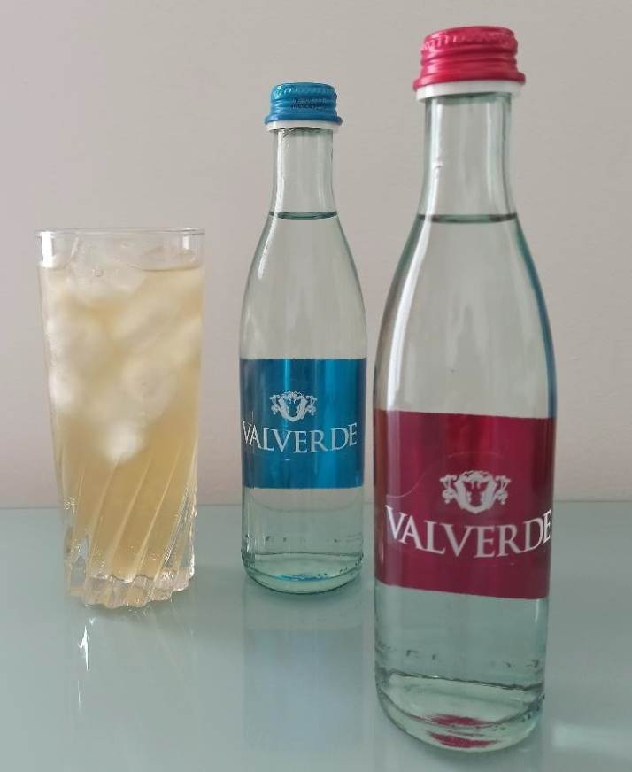 1 bottiglia di Acqua Valverde Frizzante 30 ml di succo di limone