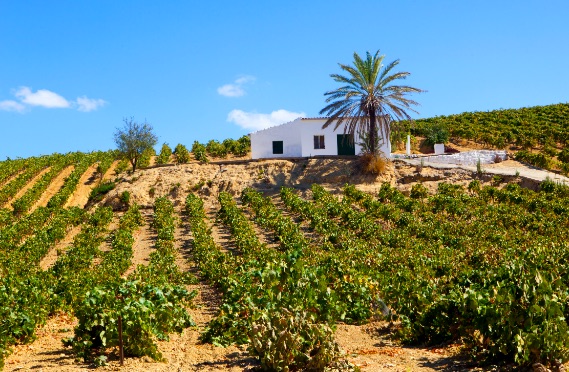 In tutto il Marco de Jerez troviamo una terra bianca, chiamata albariza, che è perfetta per la crescita delle viti. L’albariza è un terreno calcareo, argilloso e molto organico, che assorbe l’acqua piovana e mantiene umido il sottosuolo. Nel Marco de Jerez i vigneti non vengono irrigati, è l’albariza a fornire l’umidità necessaria alle viti durante tutto l’anno. Inoltre, la sua superficie bianca funge da specchio che riflette la luce del sole in inverno e trasmette calore alla pianta nelle giornate fredde. La posizione del Marco de Jerez, tra i fiumi Guadalete e Guadalquivir e vicino all’Oceano Atlantico, offre inoltre un clima meraviglioso: una temperatura media mite, più di 300 giorni di sole all’anno e precipitazioni distribuite nei mesi di ottobre e maggio, insieme a venti caldi da ovest e freschi e umidi da est.