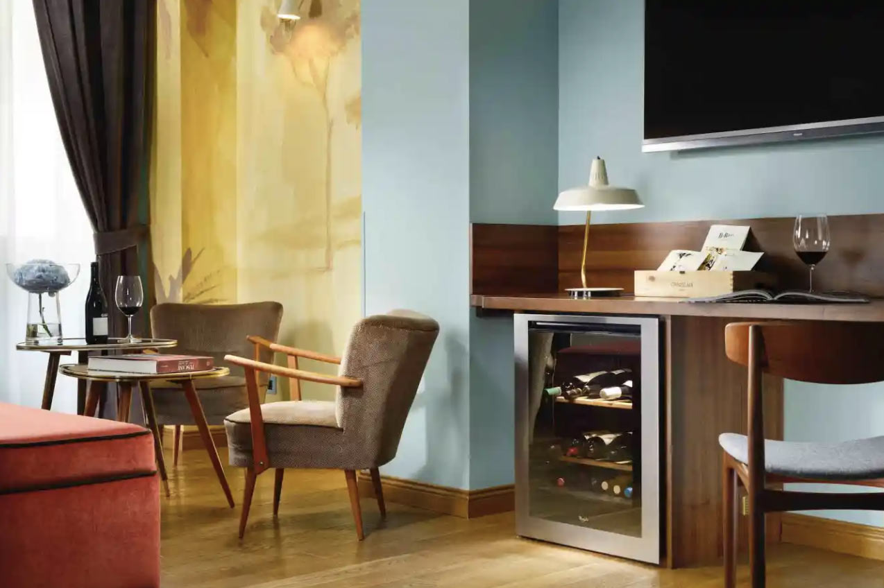 “Abbiamo aperto nel 2017, costituendo di fatto il primo hotel a Roma incentrato sui vini – spiega il sommelier della struttura, Marco Ciampini – La nostra cantina è composta all’80% da bottigliie italiane provenienti da tutte le regioni. Ci sono le migliori eccellenze incluse annate molto datate, vini stoccati fin dal 1980. Inoltre all’interno delle camere abbiamo ideato un concept particolare, al posto dei quadri, abbiamo fotografato le etichette dei vini più importanti sulla scena internazionale, e realizzato stampe di grande formato appese alle pareti. Non abbiamo il classico minibar ma una deliziosa wine cellar con una selezione di quattro bianchi e quattro rossi tutti diversi per ogni camera. Al momento della prenotazione chiediamo al cliente le preferenze sul vino, così se gradiscono champagne si può creare una cantinetta apposta per loro. Un servizio su misura, tailor made. Offriamo anche la possibilità di partecipare a degustazioni mirate che si tengono nella nostra cigar lounge, un luogo molto intimo ed esclusivo. In queste iniziative, generalmente della durata di una ora e mezza /due, si provano quattro etichette ed ogni vino viene abbinato a un piattino finger food studiato per le caratteristiche della bottiglia. Cerchiamo di fare un evento non strettamente tecnico ma coinvolgente dal punto di vista sociale. La nostra clientela è mista, la maggior parte dei clienti sono amanti del vino e vengono per testare bottiglie significative ma ci raggiungono anche neofiti che soggiornano per fare percorsi basilari di entrata in questo mondo. Le persone che scelgono la nostra struttura, amano molto il Franciacorta, ma anche tantissima Toscana, vini importanti e corposi quali Barolo e Barbaresco”.