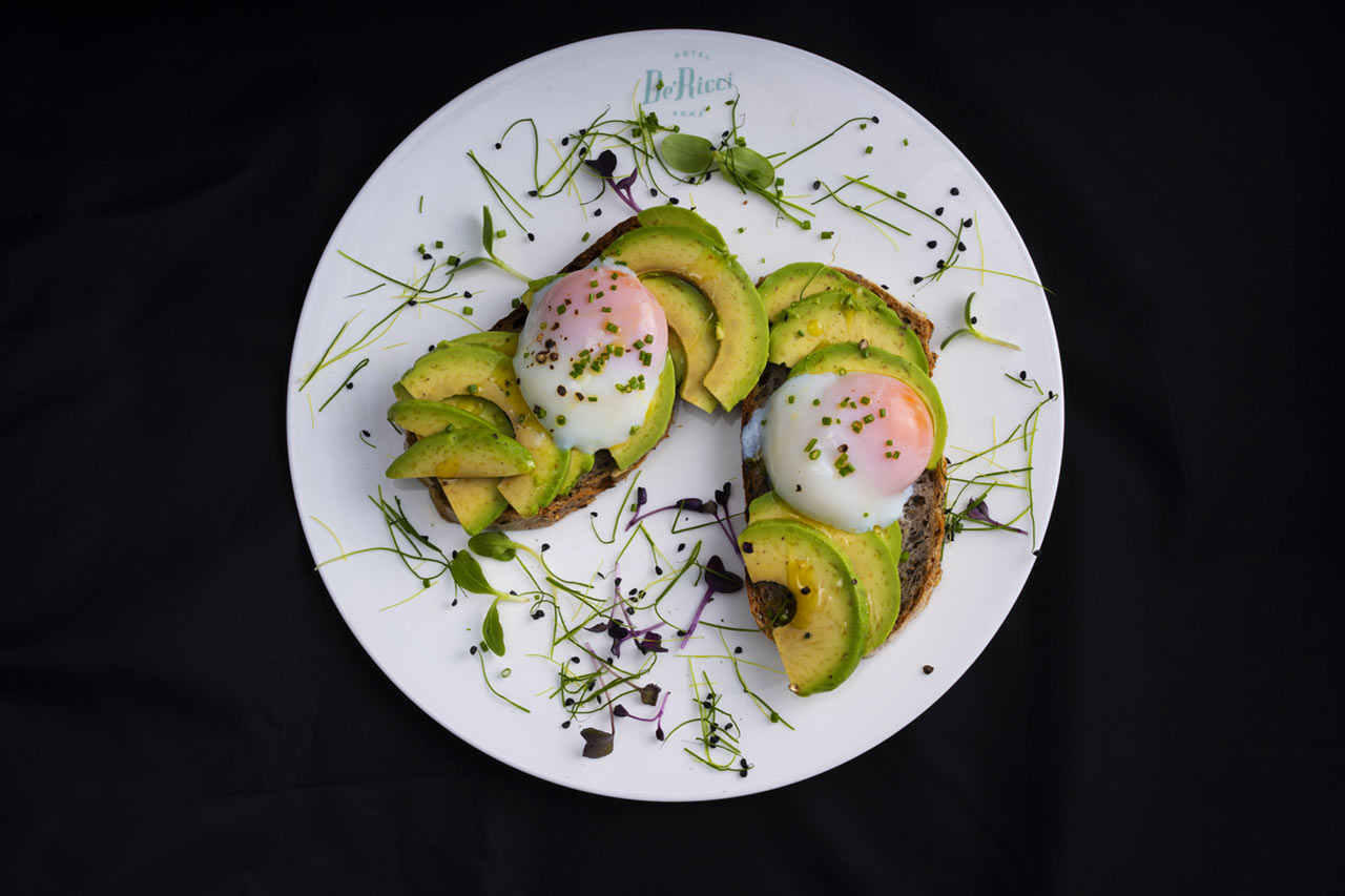 L’Hotel dé Ricci vanta inoltre un ristorante di altissimo pregio, seppur semplice nella sua proposta pranzo/cena: a prevalenza di mare, troviamo ad esempio Carpaccio di capesante con melone, pepe rosa e salicornia – Polpo pane carasau, polvere di olive taggiasche e stracciatella – Tonnarelli con gamberi, salicornia e bottarga – Filetto di maiale con riduzione di lamponi e verdure di stagione – Trippa di seppie. Un’occasione per i turisti di provare l’essenzialità della cucina italiana e per ricordare alla gente del posto i veri sapori autentici.