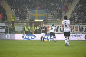 La passione di Yoga per il calcio entra allo stadio e prende posto in prima fila. Il brand di punta del Gruppo Conserve Italia, da sempre sinonimo di frutta da bere per i consumatori italiani, ha messo in campo un’importante iniziativa di visibilità a fianco del Parma Calcio. Durante tutte le partite che la squadra emiliana disputa allo Stadio Tardini di Parma sono presenti in prima fila, in corrispondenza dei corner alti, due pannelli (20 metri di lunghezza per 0,90 di altezza) con il marchio Yoga.