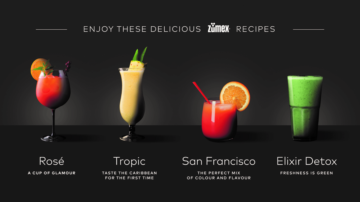 Durante i tre giorni della fiera, vi inviteremo a vivere un’autentica juicing experience nel nostro imponente JuiceBar, dove i professionisti dei succhi prepareranno dei mocktail con le ultime soluzioni di spremitura di ZUMEX®, quattro ricette elaborate esclusivamente da goderti mentre scopri l’appena arrivato succo del futuro.